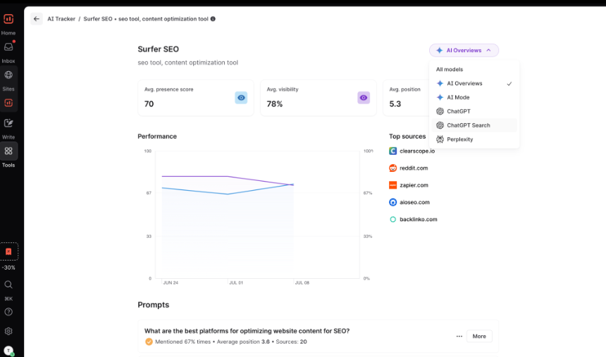 - Test structure and readability with Peec.ai or SurferSEO’s AI Tracker before publishing.