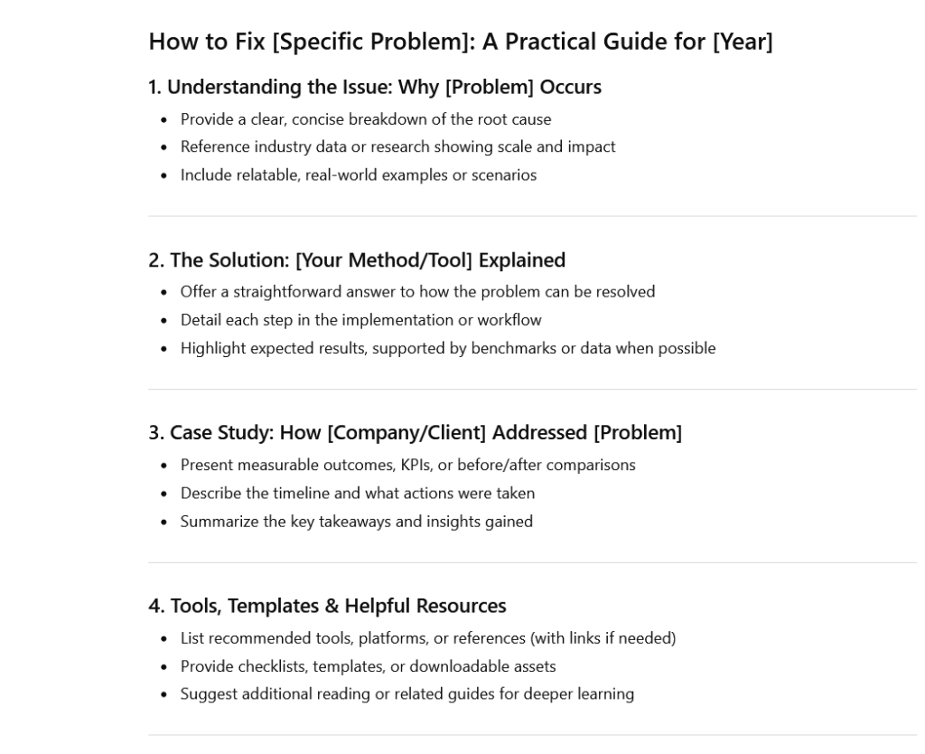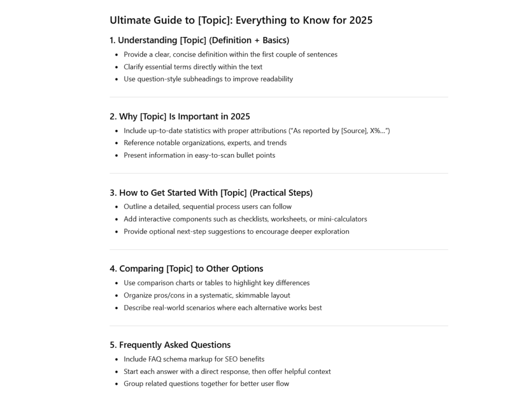 - Format it for AI readability (tables, lists, short paragraphs).