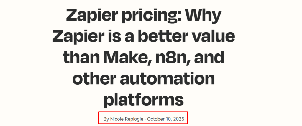 Zapier’s team runs this like clockwork, and it’s one of the reasons their content never stagnates. Every article has a version number, a review owner, and an “updated” timestamp. That’s SEO maturity in an AI-first world.
