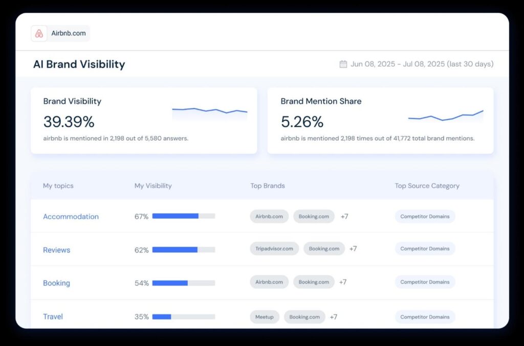 - Conversation visibility – appearing in AI-generated summaries, assistant responses, and Overviews.